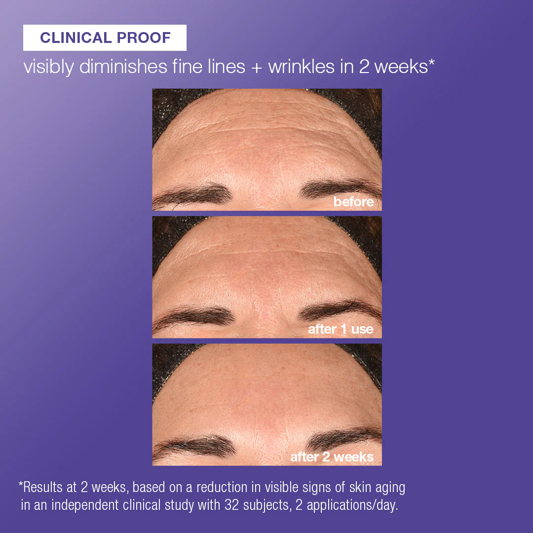 Exfoliating enzymes help clear away dull surface cells, revealing smoother, brighter skin. A regenerative exosome blend acts in multiple layers of skin’s surface, visibly diminishing fine lines and wrinkles. In an independent clinical study, fine lines and wrinkles were visibly diminished in 2 weeks